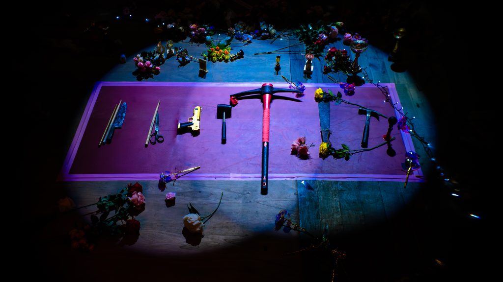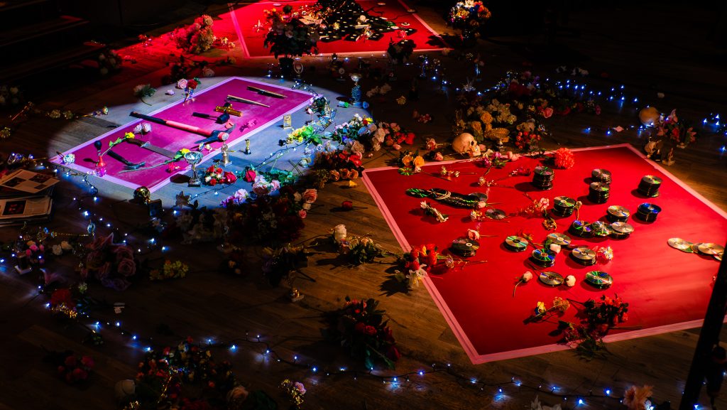 Beginning its thinking with the 30 year old essay ‘The Problem With Music’ by record producer Steve Albini, this work is upset by the industrial disintegration of a disintegrating industry, The History Of Rock ™ and the systems and stories it has sold. Crossing this reference with Mathew Barney’s ‘The Order’ and situating it all in the artistic marketplace in 2023, FK is tasked with an existential end-game, destined to lose but compelled to play.